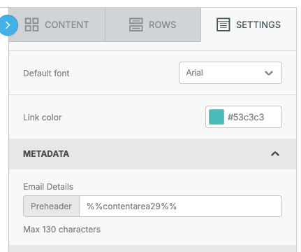 We've made pre-headers even simpler to add to your templates. When editing a template, click the Settings tab and scroll down. You'll find a new Metadata section with a Preheader field. Simply add your static preheader text to this field or copy and paste a content area code in this section. You no longer need to create a row in your template and modify the html directly.